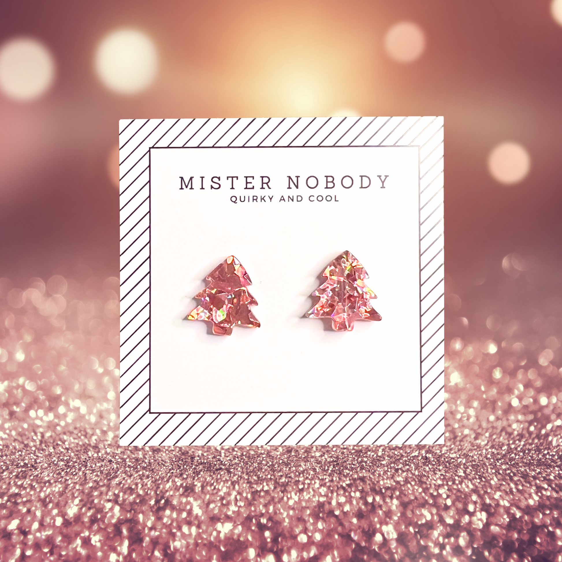 Rose Gold Glitter Christmas Tree - Stud Earrings